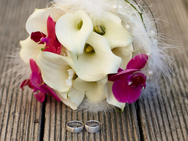 vom Brautstrauß mit korrespondierendem Anstecker mit Tischdeko, Kirchenschmuck, an das Fahrzeug denken wir auch und und und, damit der Tag in bester Erinnerung bleibt.