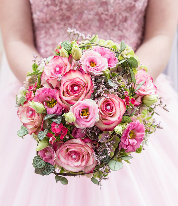 vom Brautstrauß mit korrespondierendem Anstecker mit Tischdeko, Kirchenschmuck, an das Fahrzeug denken wir auch und und und, damit der Tag in bester Erinnerung bleibt.